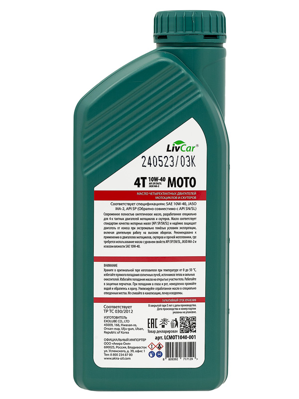 Современное полностью синтетическое моторное масло, предназначенное для 4-х тактных бензиновых двигателей мотоциклов, мотороллеров, скутеров и прочей мототехники. Масло соответствует самым современным стандартам качества моторных масел и надёжно защищает агрегат от износа при экстремально тяжёлых условиях эксплуатации, включая длительную работу на высоких оборотах.
