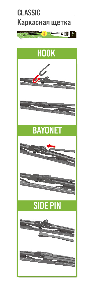 - В основе каркаса щеток используется усиленная конструкция из нержавеющей стали, обеспечивающая долгий срок службы и отличное прилегание к лобовому стеклу